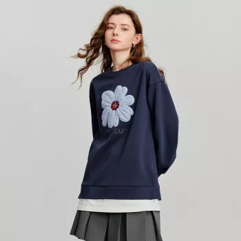 Preppy College Style Embroidered Sweatshirt – Loose Fit Drop Sleeve Pullover