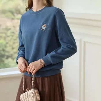 Women’s Cotton Embroidered Knit Pullover – Casual O-Neck Long Sleeve Top