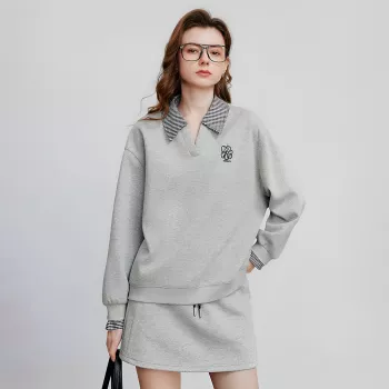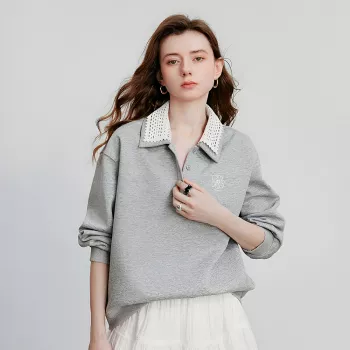Women’s Casual Cotton Pullover with Embroidered Detail & Layered Collar