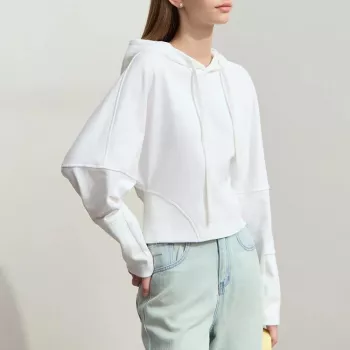 Casual Drawstring Hoodie with Batwing Sleeves and Embroidery