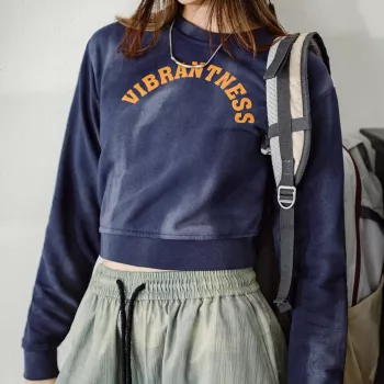 Retro Embroidered Polo Sweatshirt Crop Top – Sporty Streetwear Pullover